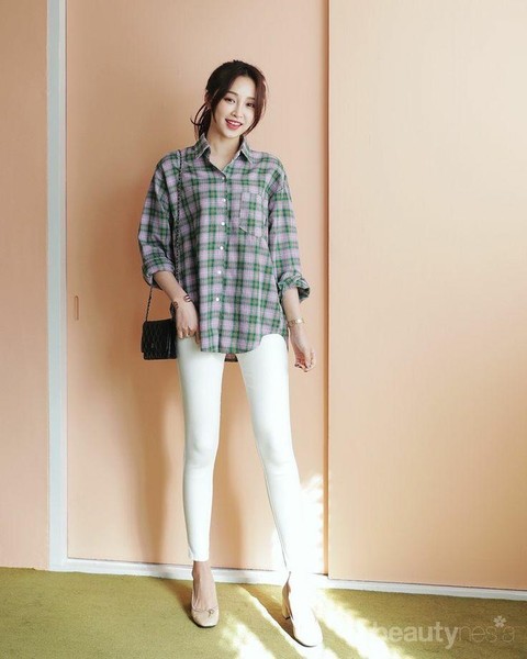 Foto: IstimewaKamu yang suka bergaya boyish, memadukan white jeans dengan kemeja tartan juga keren, lho!
