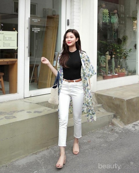 Foto: IstimewaMenghabiskan weekend kamu dengan jalan-jalan seru? Kamu bisa memakai inner hitam dan white jeans juga floral outer untuk tampilan yang lebih fashionable.