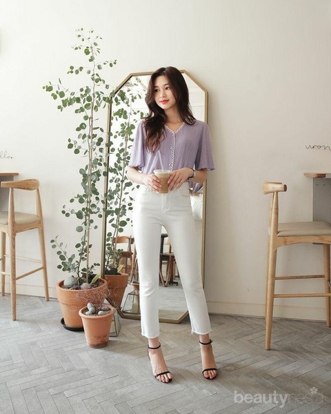 Foto: IstimewaWhite jeans memang cocok dipadukan dengan warna apapun. Namun jika kamu menginginkan tampilan yang cute namun elegan, memadukannya dengan warna-warna pastel sangat direkomendasikan, Ladies.