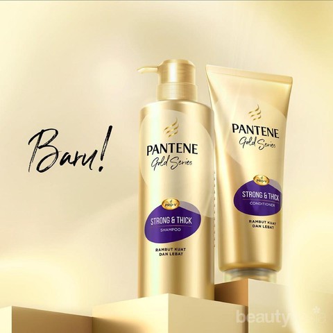 - Bilas sampai bersih dengan air mengalir sampai busa habis. Nikmati perawatan rambut terbaik dari Pantene Gold ini dalam tiga varian, yaitu Strong & Thick Variant, Smooth & Sleek Variant, dan Black & Glossy