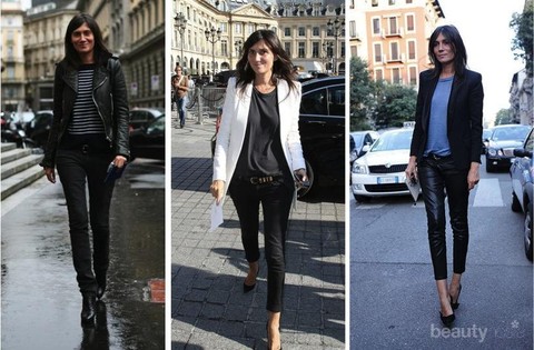 Jika Miroslava Duma gemar memadu-padankan berbagai macam corak dan warna, lain halnya dengan Editor in Chief Vogue Perancis, Emmanuelle Alt. Wanita berzodiak Taurus ini memiliki personal style yang cenderung simpel namun cukup pemilih dalam kualitas bahan dari pakaian tersebut. Alt sering menggunakan celana berbahan kulit yang dipadukan dengan blazer serta pointy heels. Cara berpakaiannya ini menunjukan bahwa Alt patut diberi julukan effortlessly stylish. Fashion brand yang menjadi andalan Alt dalam berpakaian adalah Isabel Marant dan Saint Laurent. Bila kamu terinspirasi dengan cara berpakaian Alt, pilihlah fashion item yang klasik seperti skinny leather pants, blazer dengan sentuhan satin pada bagian kerah dan pointy heels. Untuk warna, pilihan bisa jatuh terhadap warna yang cenderung netral seperti hitam, putih, navy blue, dan warna nude. Dan yang terakhir adalah jangan lupa untuk membeli fashion item yang terbuat dari bahan berkualitas tinggi.