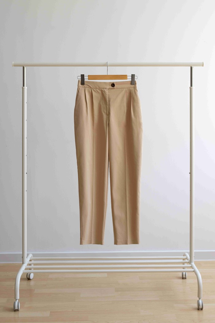 Rok panjang dan celana panjang juga masuk daftar pakaian yang sebaiknya disimpan dengan cara digantung. Gantungan khusus dengan klip atau penjepit dapat membantu menjaga bentuk rok atau celana, terutama bagian pinggangnya.