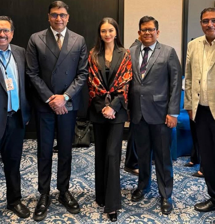 Raline Shah tampil anggun dan berkelas di India dengan perpaduan blazer putih modern yang sleek dan sentuhan kain tradisional bernuansa merah-oranye bermotif batik. Detail belt hitam mempertegas siluetnya, sementara rok satin panjang menambah kesan jenjang.