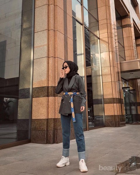 Foto: https://Instagram.com/strngrrrStyle hijab yang satu ini juga lagi ngehits banget ladies. Style kekinian ala selebgram hibabers di Instagram ini bisa kalian ikuti dengan memadukan blazer bersama dengan penggunaan belt. Kalian juga bisa bermain dengan warna blazer yang kalian gunakan. Style ini cocok juga apabila kalian gunaka blazer wanita hitam dengan belt yang memiliki warna vivid atau pattern yang unik, bakal cocok banget buat foto OOTD, ladies.