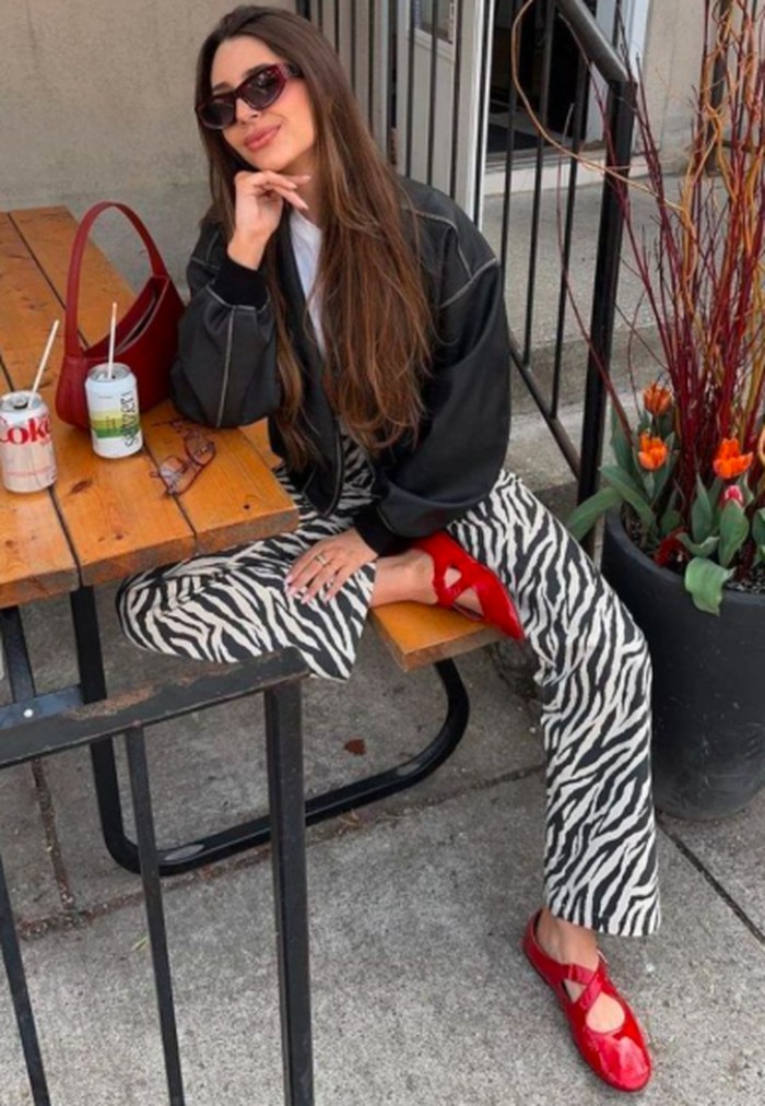 Tampil playful dengan twist retro lewat kombinasi zebra print pants dan red ballet shoes! Gaya ini terasa fun berkat sentuhan warna merah yang kontras namun tetap harmonis dengan atasan putih polos dan jaket kulit hitam. Tambahan kacamata cat-eye dan shoulder bag merah menyempurnakan kesan vintage-modern yang cocok untuk outfit brunch bareng teman.