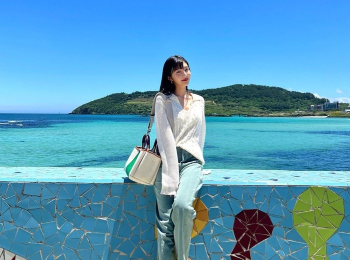 Gaya Joy Red Velvet yang satu ini simple tapi sangat cocok untuk outfit liburan. Kamu bisa memadukan tube top dengan celana jeans berpotongan longgar seperti baggy jeans.