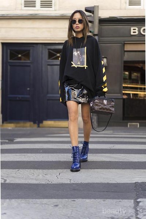 leather skirt dan Dr. Martens boots. Dijamin fashionable banget dan nggak akan bikin kamu terkesan lebay!