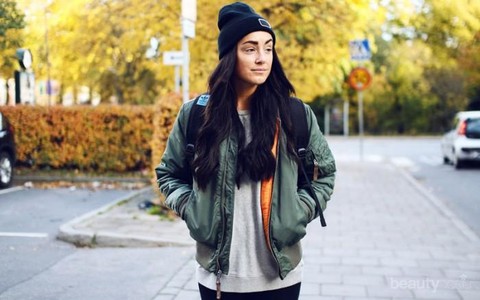 Jangan biarkan bomber jacket milik pacarmu hanya menggantung di dalam lemari. Mending dipakai aja sebagai pelengkap fashion ke kampus. Nggak perlu blus super cantik, hanya dengan sebuah t-shirt kesayangan, celana jeans, beanie dan jaket, kamu sudah siap menjalani kegiatan seharian di kampus. Outfit ini nyaman banget, apalagi bagi kamu yang nggak suka outfit ribet demi bebas bergerak kemanapun.