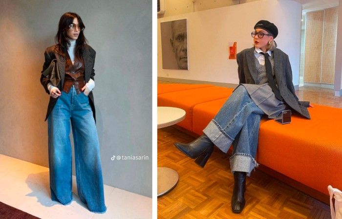 Gaya blazer dengan jeans jadi pilihan favorit untuk OOTD casual yang tetap classy. Kombinasi blazer oversized dengan wide-leg jeans menciptakan look modern, dan terlihat mahal tanpa berlebihan/Foto: tiktok.com/taniasarin/pinterest.com/baileymcwhinnie