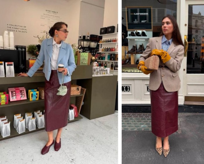 Kalau ingin tampilan yang lebih bold dan sophisticated, coba padukan blazer klasik dengan leather skirt. Leather skirt warna maroon atau cokelat dipadukan dengan blazer netral bisa menciptakan OOTD blazer yang terlihat mahal dan mature.