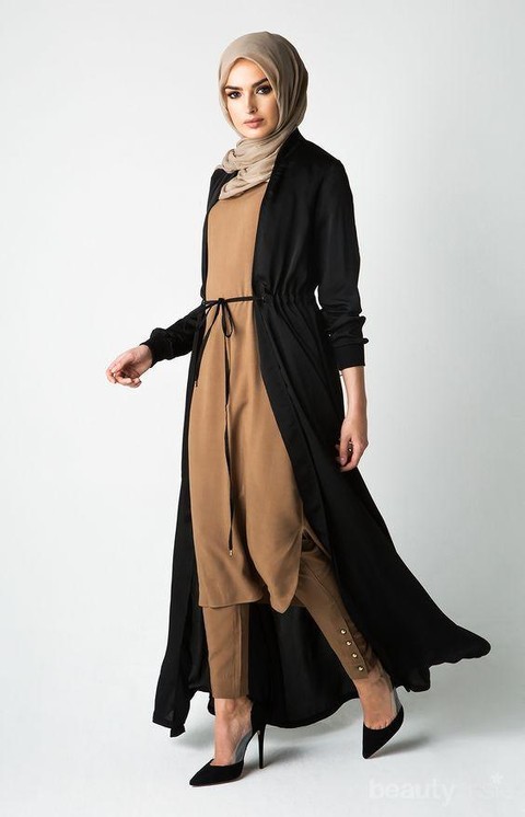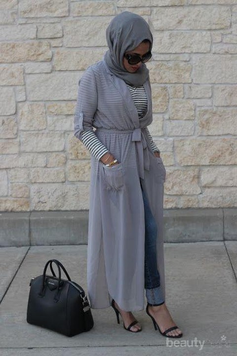 Insiprasi gaya heels hijab yang terakhir adalah dengan memadukannya dengan dengan outer beraksen slit di bagian samping. Outer dengan bahan chiffon akan membuat gayamu effortless stylish karena bahannya yang ringan dan memberikan kesan classy.