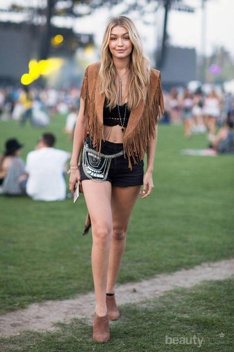 Foto: IstimewaUntuk kamu yang tidak suka memakai dress atau gaun, mungkin ada alternatif lain yang bisa membuat kaya kamu tetap Boho style. Kamu cukup menggunakan tanktop yang ditutupi dengan rompi absen rumbai. Pilih rompi berwarna coklat agar gaya Boho kamu semakin maksimal.
