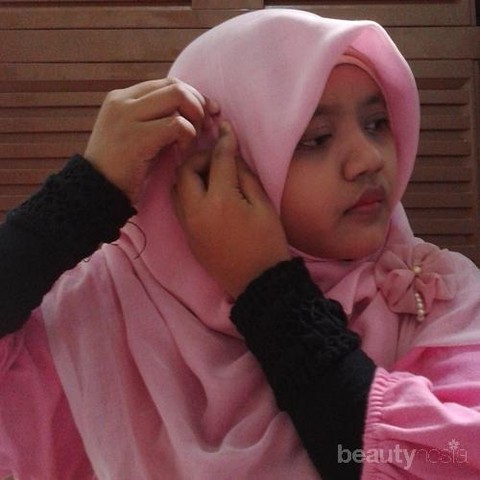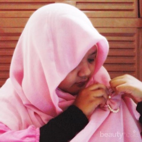 Langkah terakhir, rapikan kerudung pada wajah sebelah kanan lalu sematkan jarum pentul. Kamu bisa menyematkannya di atas daun telinga agar jarum tidak mudah menusuk, atau melukai kita saat banyak bergerak.