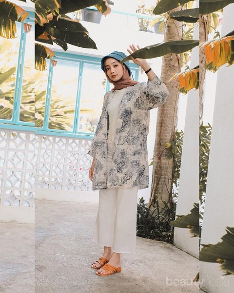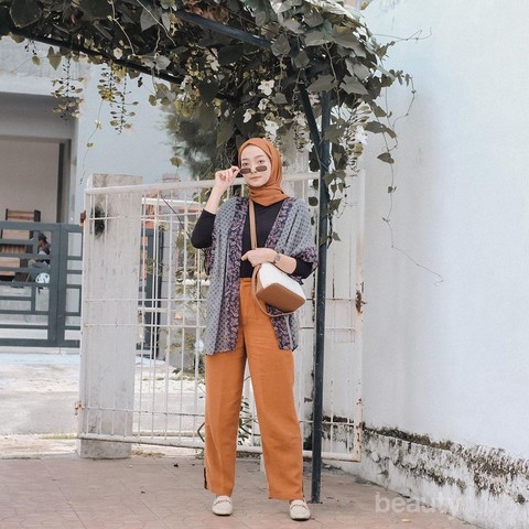 para hijabers. Kamu bisa memadukan outer motif dengan manset polos dan mengenakan kulot longgar. Sebagai pelengkap, kamu bisa mengenakan sandal.