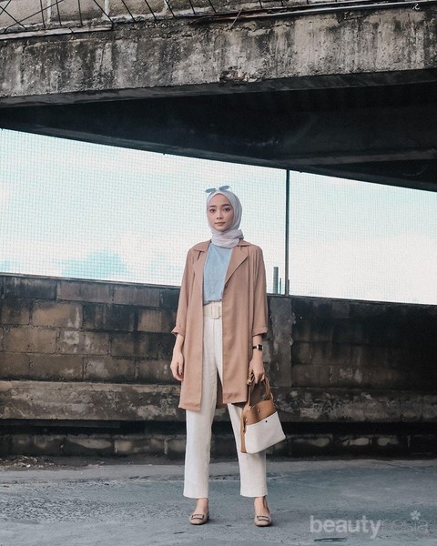 Foto: https://www.instagram.com/liza.rosalita/Buat kamu yang suka dengan mengenakan outer. Kamu bisa menjadikan sytle hijabers satu ini sebagai sytle untuk kamu pergi ke kantor. Liza Rosalita terlihat mengenakan atasan berwarna biru yang dipadukan dengan outer berwarna cokelat tua dan celana panjang berbahan katun dengan warna cream. Untuk menyempurnakan tampilannya, Liza Rosalita menambahkan ikat panggang pada celana panjangnya dan mengenakan flat shoes.