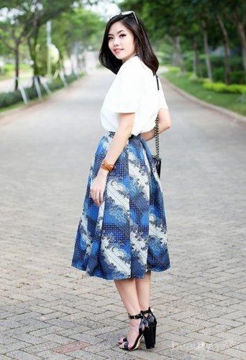 Rok midi banyak dipakai oleh para pecinta fashion. Terbukti banyak yang mencoba mix and match dengan model rok midi ini. Nah, buat kamu yang ingin tampil beda, kamu bisa juga mencoba untuk memakai rok midi batik supaya dapat tampil fashionable. Rok dengan model 7/8 ini juga sangat cocok jika kamu menggunakan highheels ataupun sneaker.