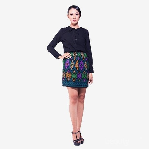 Kebanyakan perempuan mengandalkan rok songket sebagai OOTD ke kondangan. Nah, buat kamu yang ingin tampil beda dengan model rok batik pendek, kamu bisa mencoba mix and match rok batik songket dengan blouse untuk gaya OOTD kamu. Supaya penampilan kamu semakin sempurna, kamu bisa memakai sepatu wedges degan warna yang kamu sesuaikan dengan warna blouse kamu.
