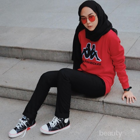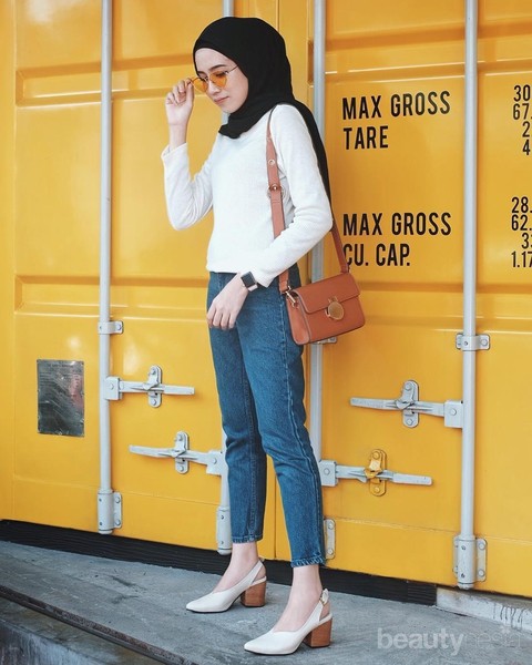 Celana jeans memang outfit terbaik untuk yang suka banget bergaya kasual dan simpel. Inspirasi fashion hijab yang satu ini cocok untuk kamu anak kuliahan yang suka begaya kasual namun ada sentuhan sedikit feminin.