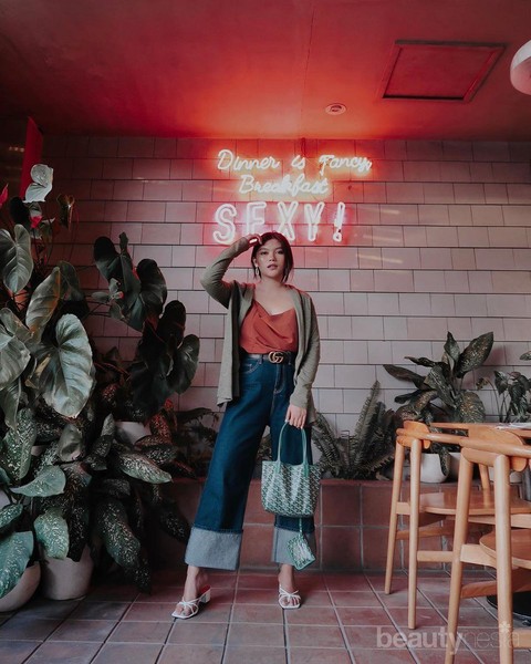 Foto: https://www.instagram.com/nevaindriany/Banyak wanita yang memiliki tubuh mungil menghindari celana dengan cutting yang besar. Mitosnya celana yang memiliki tidak ketat akan memberikan efek gemuk dan pendek. Hal ini tak semuanya salah, tetapi jenis celana, seperti cullote jeans dapat menutupi kekurang tubuh pada bagian kaki, sehingga bentuk tubuh terlihat lebih ideal.