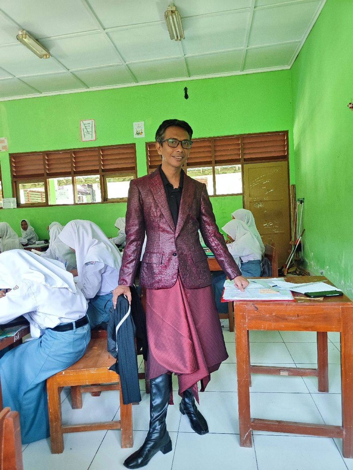 5 Potret Guru SMK Viral Pakai Outfit Nyentrik saat Mengajar, Ternyata Baju Hasil Karya Muridnya!