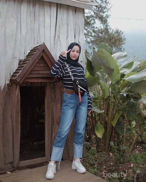 Foto: https://www.instagram.com/aghniapunjabi/Nah, kalau buat style yang satu ini, cocok banget nih buat dijadikan inspirasi outfit kamu untuk pergi ke kampus atau mengikuti kegiatan kampus lain. Praktis dengan kaos lengan panjang bergaris, celana jeans, hijab yang juga senada, dan tentunya sneakers. Sekalipun praktis dan simple seperti ini, Aghnia tetap terlihat classy yah ladies.
