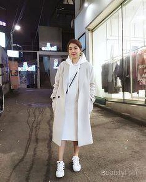 Kalau cuaca lagi dingin-dinginnya, nggak ada salahnya kamu memadukan dua baju hangat. Kamu bisa memakai hoodie sebagai layer pertama dan long jacket atau cardigan pada layer kedua. Hoodie dress kamu jadi makin terlihat kece dengan outer. Kalau nggak punya hoodie dress, kamu bisa kok pakai hoodie biasa dipadukan celana senada. Tampilanmu jadi sekece unnie Korea nih!