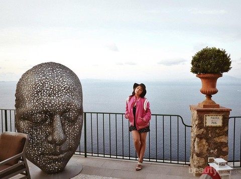 Wanita berusia 24 tahun ini juga berlibur ke Italia, tepatnya di Anacapri. Untuk liburan ke pantai dengan pemandangan Itali yang romatis. Nikita Willy menggunakan mini dress pulkadot berwarna hitam dan untuk outwearnya Nikita Willy menggunakan Jaket dari Saint Laurent. Harga jaket berwarna pink yang lucu ini adalah sekitar USD 376 atau Rp5,3 juta.