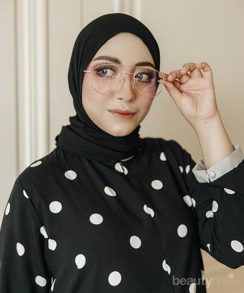 Foto: https://www.instagram.com/vickyalaydrus/Tidak hanya hijab namun blouse yang ia gunakan juga berwarna dasar hitam dengan motif polkadot putih. Vicky menggunakan jilbab pashmina persegi panjang yang sisa bahannya ia lilitkan di leher sehingga tampak rapi. Untuk gaya make up, meskipun tetap flawless dengan model lipstik ombre, namun pada gaya kali ini bagian bulu mata terlihat tebal dan sangat bervolume.