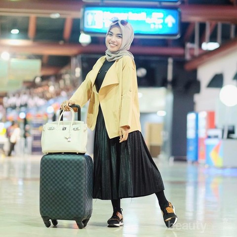 edgy, terlihat Medina sedang berada di bandara untuk melakukan perjalanan liburan. Penampilannya pun berhasil mencuri perhatian. Masing-masing item