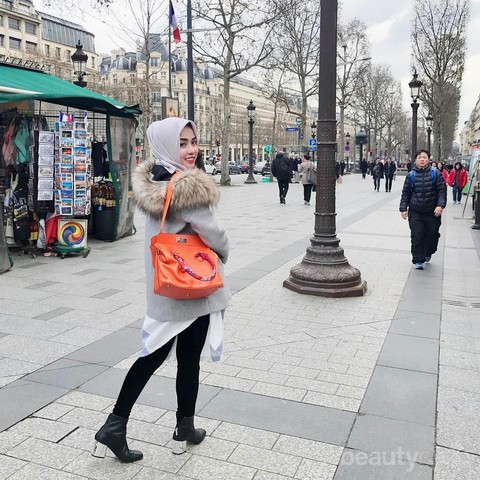 Gaya liburan yang pertama ini terlihat saat Medina berkunjung ke Prancis. Bergaya