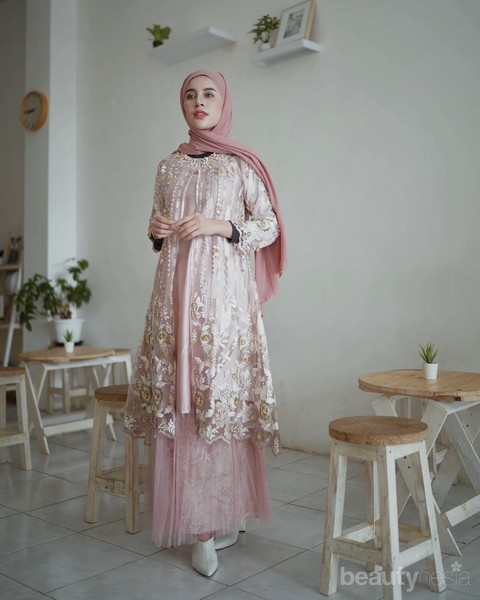 Slebgram hijab ini memadukan kebaya brokat dengan bawahan tile skirt. Ini adalah ide yang unik untuk kamu yang sedang mencari inspirasi bridesmaid dress. Tidak hanya melulu dipasangkan dengan kain batik ataupun songket, kebaya brokat juga cocok dipadukan jengan tile skirt. Setuju enggak, Ladies?