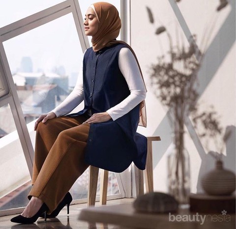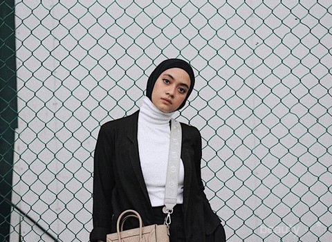 Saat ingin tampil stylish tapi tidak ingin membuat tampilan jilbab yang berlebihan, kamu bisa meniru gaya Ayudia ini. Lilitkan jilbab hingga kencang dan rapi, lalu kenakan atasan dengan model turtle neck. Tanpa usaha lebih kamu sudah bisa terlihat stylish dan gaya.