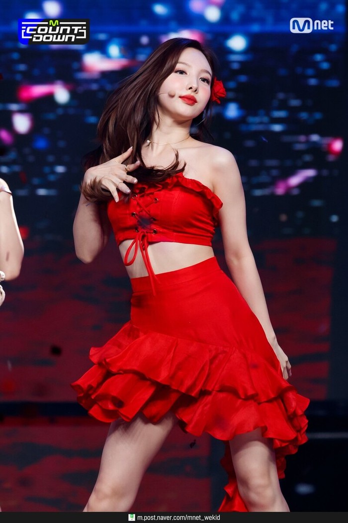 Nayeon, salah satu anggota dari grup TWICE, memukau para penggemarnya dengan penampilannya yang memakai dress merah selama era lagu "Alcohol Free." Dress ini menciptakan kesan yang berbeda dan menarik dalam perjalanan kariernya.