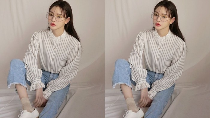 Suka bergaya vintage? Kamu bisa memadukan kemeja dengan motif salur atau garis-garis vertikal dengan fringe jeans. Untuk menambah kesan girly, pilih kemeja dengan aksen pita atau lace pada kemeja kamu agar look yang ditampilkan lebih gorgeous!