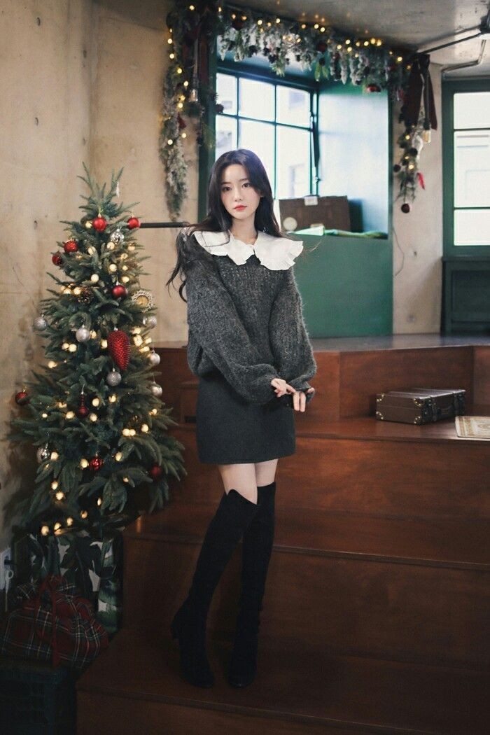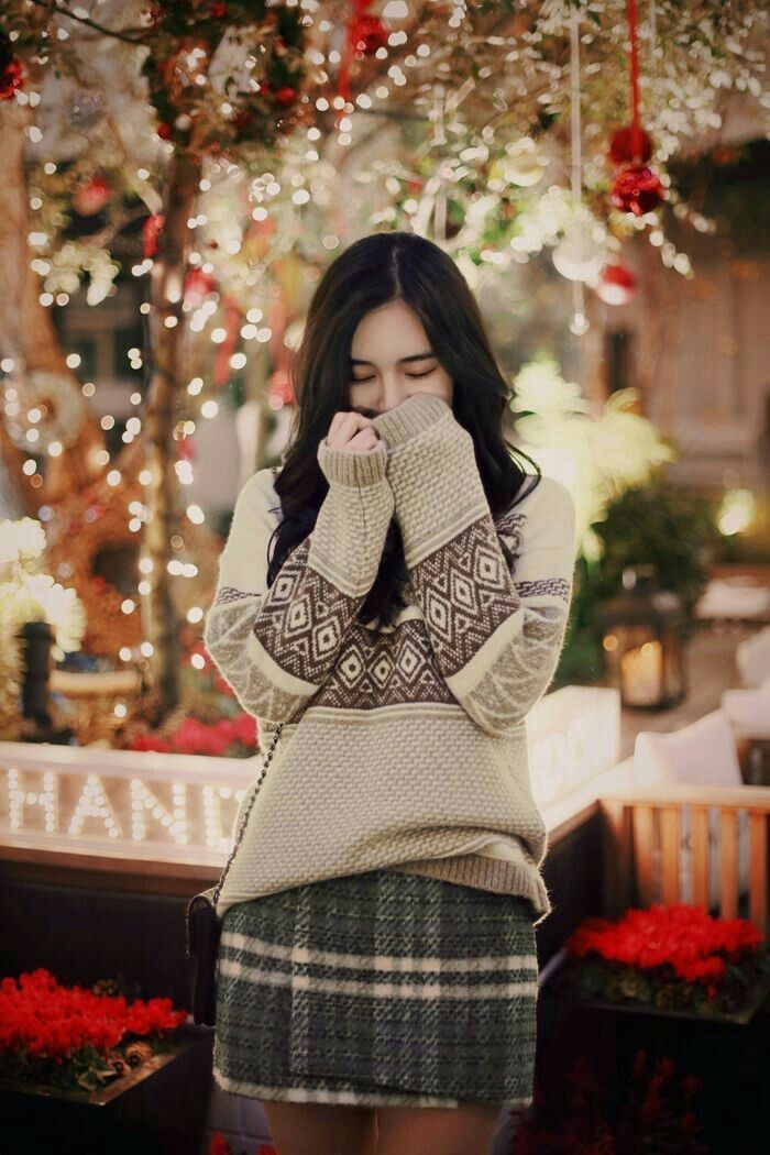 Jika acara Natalmu berkonsep semi outdoor dengan udara yang cukup dingin, padu padan sweater dan rok pendek berbahan tweed bisa dijadikan pilihan. Pilih sweater berbahan rajut agar lebih hangat dan tetap modis.