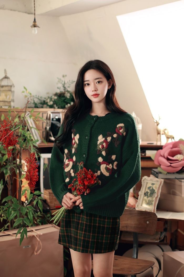 Cardigan Hijau Emerald + Plaid Mini Skirt/ Foto: Instagram.com/Milkcocoa_official