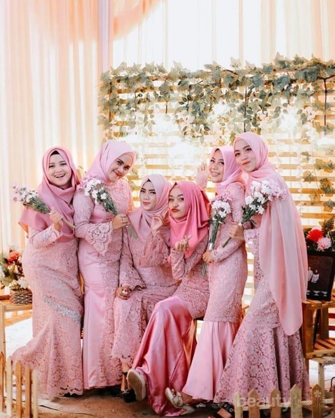 pink muda. Untuk hijabnya, kamu bisa pilih warna yang senada dengan brukat agar kesannya semakin cantik.