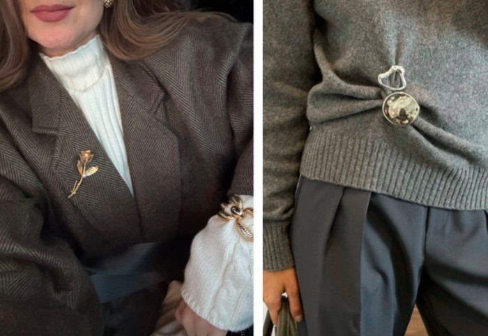 Aksesori seperti brooch jadi bagian dari fashion trend 2026 yang kembali populer, memberikan sentuhan statement pada outfit di spring 2026/Foto: pinterest.com/OlgasAbode/anitovan