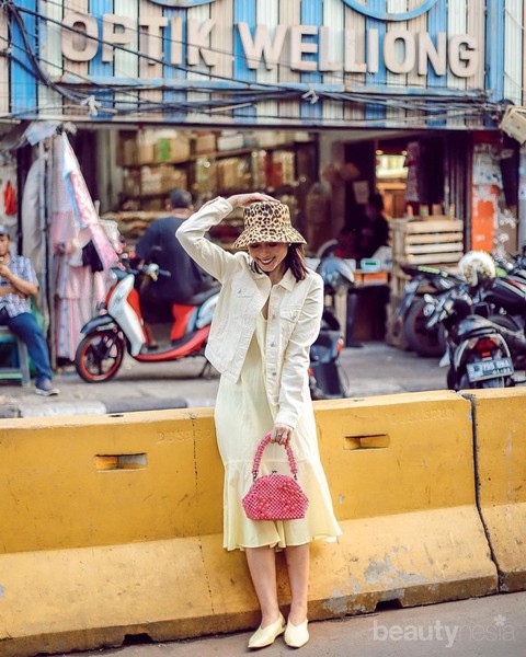 Sama-sama berwarna kuning, mungkin inilah sebabnya Ayla memilih pembatas jalan di Jakarta sebagai teman berfotonya. Di sini Ayla mengenakan dress, jaket dan sepatu warna senada yaitu kuning muda. Bucket hat bermotif dan tas tangan berwarna merah muda cocok banget, nih, bikin kesan yang stylish abis! Wah, spot foto bagus di Jakarta ini bisa jadi referensi kamu yang ingin mengabadikan gaya di tempat anti-mainstream.