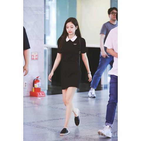 Salah satu personel Black Pink kedapatan memakai tunik yang sederhana dan nyaman. Ladies bisa mencoba tunik hitam ini dengan memadukannya sepatu slip yang enak banget buat dipakai jalan. Tambahkan back pack atau sling bag agar tampilan kamu semakin kasual.