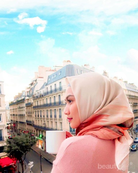 Foto: https://www.instagram.com/melodylaksani92/Bagi kamu yang merasa punya wajah kusam, masih ada pilihan warna lain yaitu soft peach. Di sini Melody mengenakan hijab motif yang memadukan warna soft peach dengan jingga dan merah, menghasilkan paduan warna yang cantik. warna ini membuat tone kulit terlihat lebih lembut dan cerah.