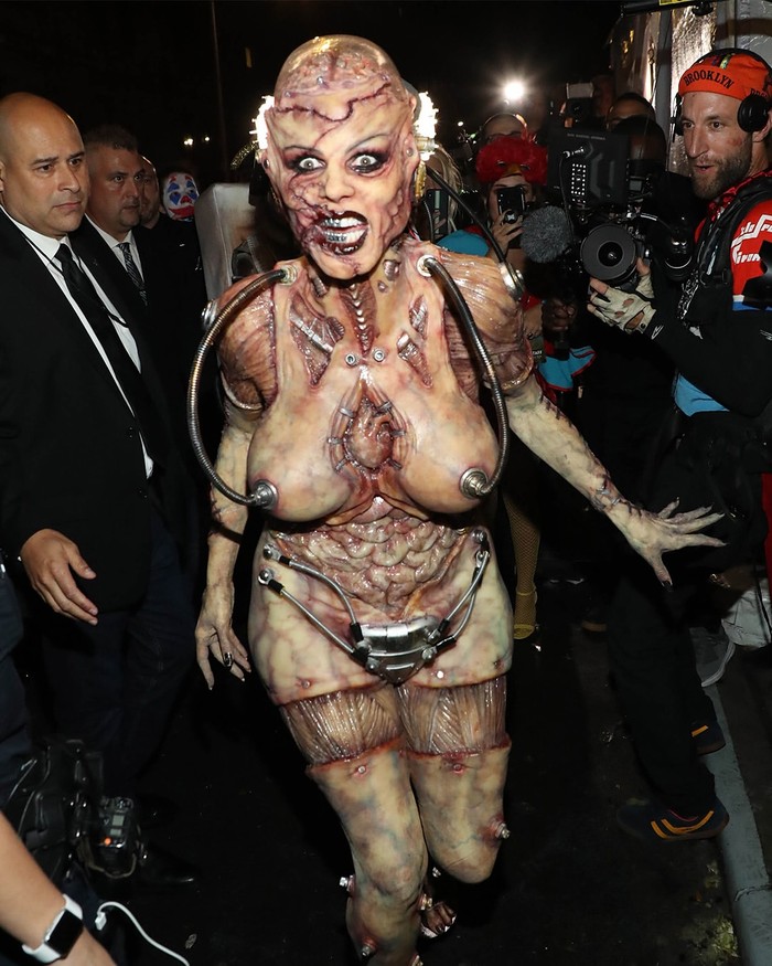 alloween 2019, Heidi Klum tampil sebagai alien ekstrem dengan prostetik otot, usus, dan otak. Makeup 12 jam ini tunjukkan dedikasi Heidi pada kostum spektakuler/Foto: Instagram/heidiklum