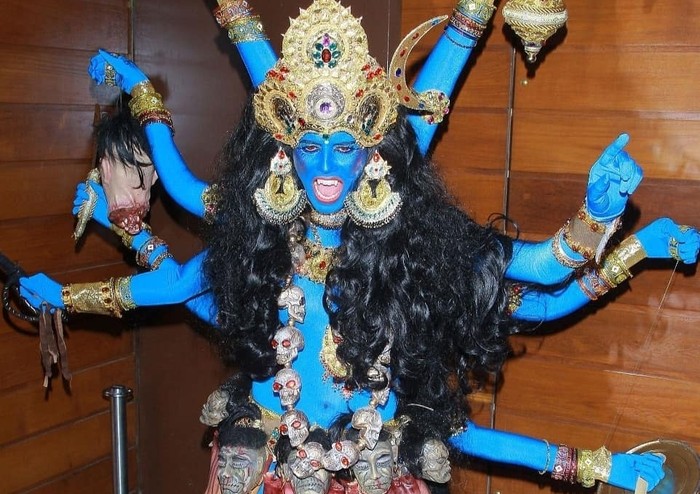 Halloween 2008, Heidi Klum tampil sebagai Kali dengan bodi biru, lengan ekstra, dan perhiasan emas. Kostum dramatis ini tunjukkan totalitas transformasi karakter Heidi/Foto: Instagram/fuzionmag