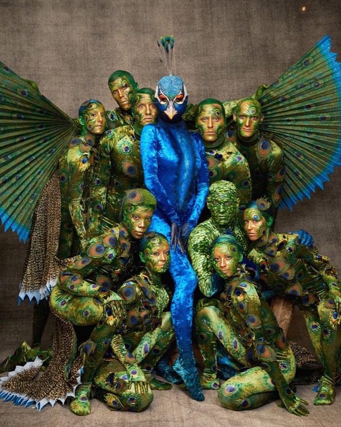 Halloween 2023, Heidi Klum jadi burung merak raksasa dengan Cirque du Soleil sebagai bulu dan Tom Kaulitz sebagai telur. Kostum interaktif ini tunjukkan kreativitas Heidi/Foto: Instagram/heidiklum