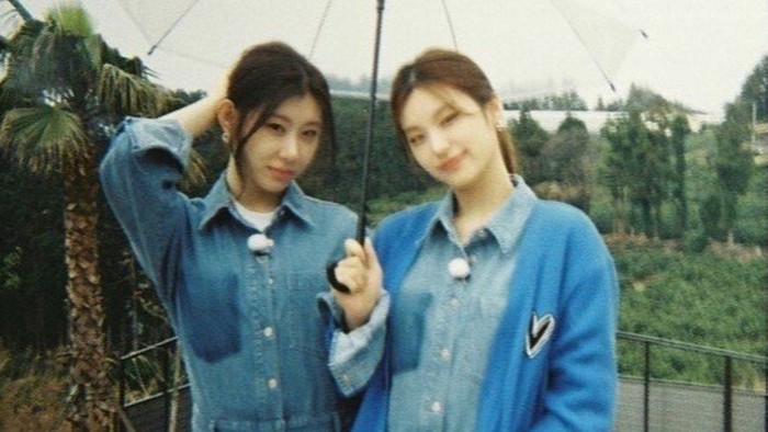 Dalam beberapa acara grup, Chaeryeong dan Yeji ITZY tak jarang memakai outfit kembar berlima sesuai jumlah member. Salah satunya jumpsuit denim ini. Chaeryeong tampak memakai kaus dengan kerah tinggi di balik denim-nya. Sementara Yeji melapisi denim yang ia pakai dengan cardigan biru senada. Seperti simbol Gemini banget ya!