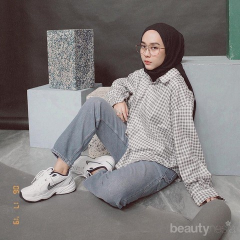Buat kamu yang punya sisi tomboy, gaya Intan Khasanah alias '@strngrrr' ini cocok banget buat kamu coba. Intan Khasanah tampil kece dalam balutan outfit boyish menggunakan kemeja kotak-kotak oversize berwarna putih yang dipadukan dengan celana regular fit jeans. Hijab hitam pun jadi pilihan Intan untuk dipadukan dengan outfit yang dikenakannya. Tak lupa, sneakers putih jadi pilihan agar penampilannya makin terlihat kece.