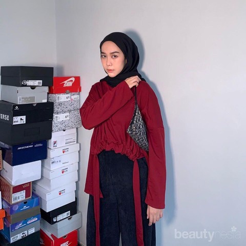 Buat kamu yang suka dan lebih percaya diri buat tampil pakai celana kulot, gaya busana Intan Khasanah ini wajib kamu tiru. Ia tampil elegan dalam balutan atasan berwarna merah yang dipadukan dengan celana kulot berbahan corduroy berwarna hitam. Hijab hitam pun jadi andalan, agar penampilan makin terlihat modis dan menawan.