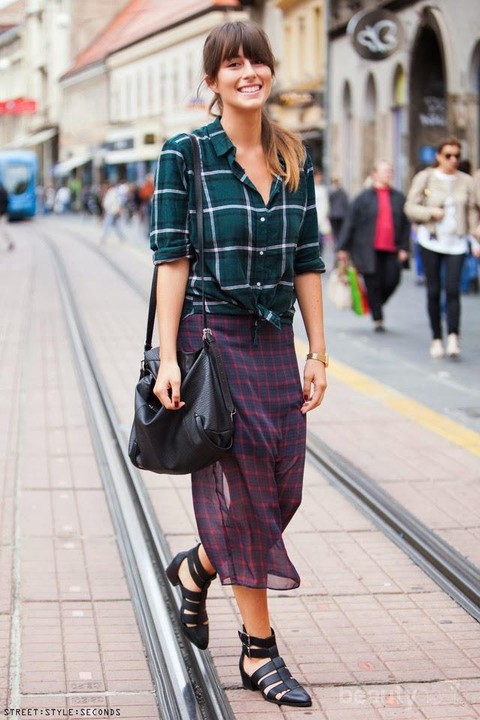 maxi skirt yang kamu gunakan. Agar terlihat lebih santai dan rapi, kamu bisa menggunakan sandal gladiator yang bisa bikin kamu semakin keren. Jika kamu berani bermain motif, kamu bisa memadukan kemeja flanel dengan