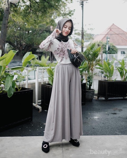 mix and match dengan celana kulot berwarna abu-abu. Celana kulot yang