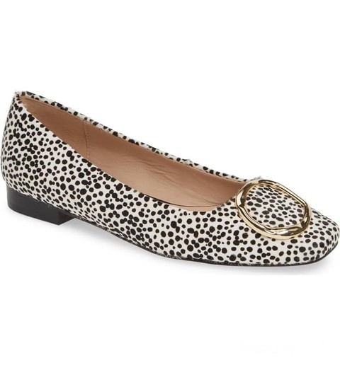 Flatshoes bermotif unik dari Something Navy ini dapat membuat penampilan kamu menjadi stylish Ladies. Kamu bisa memadukannya dengan suit berwarna hitam ataupun blazer dan rok monocrome. Penampilan kamu akan terlihat unik dan elegant Ladies. Terbuat dari Genuine calf hair sehingga enggak salah sepatu ini akan nyaman sekali digunakan untuk bekerja. Harga dari flatshoes ini adalah USD 100 atau Rp1,4 jutaan Ladies.